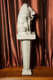 The Fortnight lion tap is much better in person - photos don't really do it justice. Resembling marble-sculpted lion statues that you would see at the entrance to an estate, this tap actually looks like real marble, thanks to the beautiful paint job and the cracks and chips sculpted into it. The lion sits on a pedestal and holds a shield under one paw. The shield is where the beer label is attached. At the top of the pedestal, both front and back, the brewery's name is carved and painted black. Overall its a really beautiful tap. They have become easy to find, and as a result are very inexpensive on the secondary market.